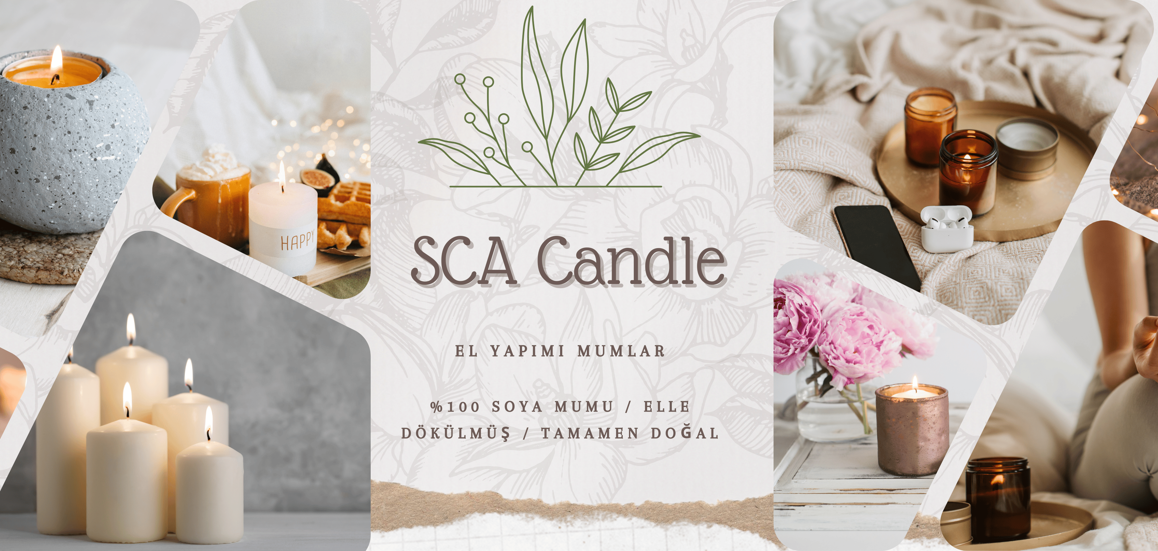 Dekoratif Mum Tek toplu +üçlü yuvarlak +Deniz kabuğu+Vazo+Şamdanlık mUm Topalm 6 parça