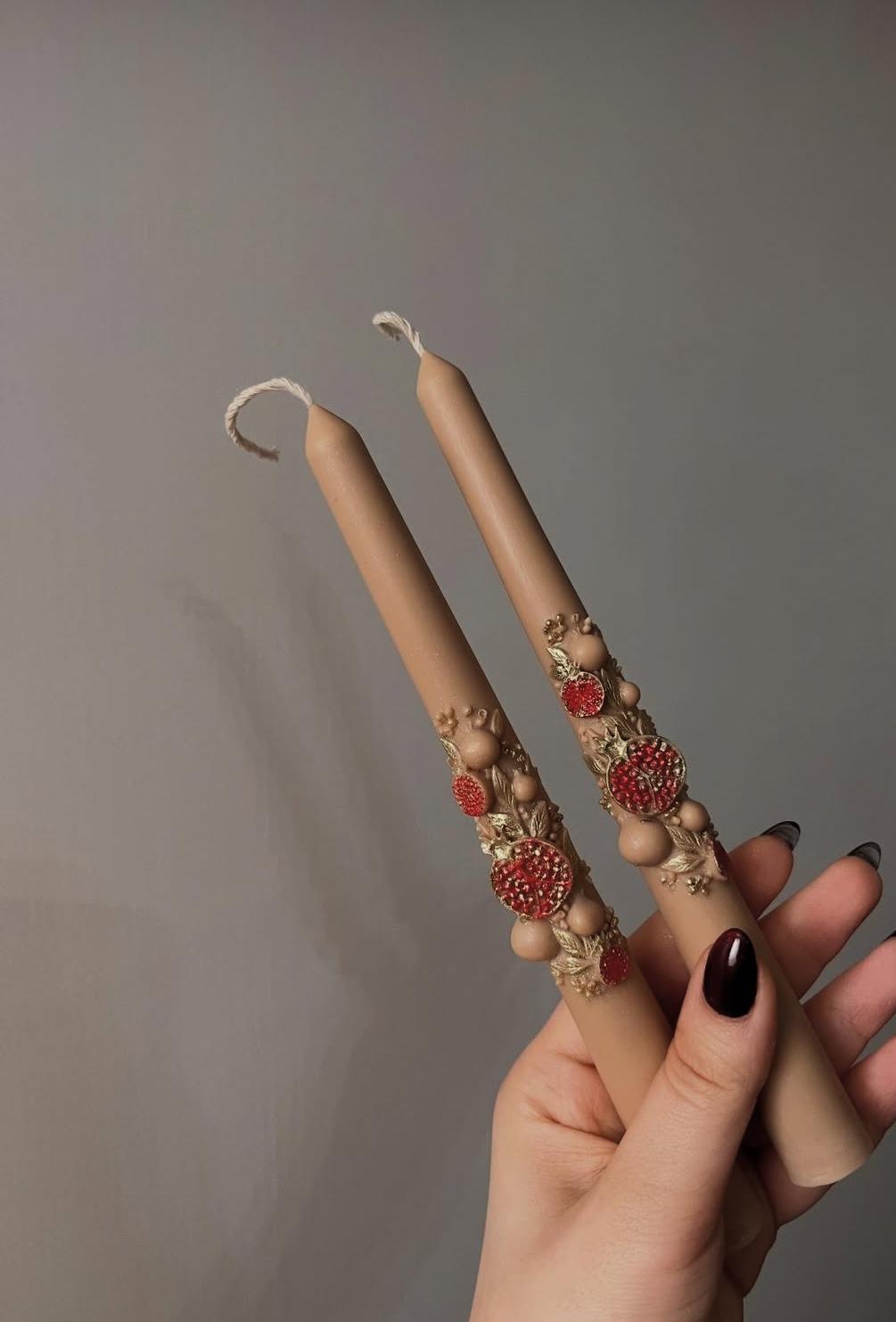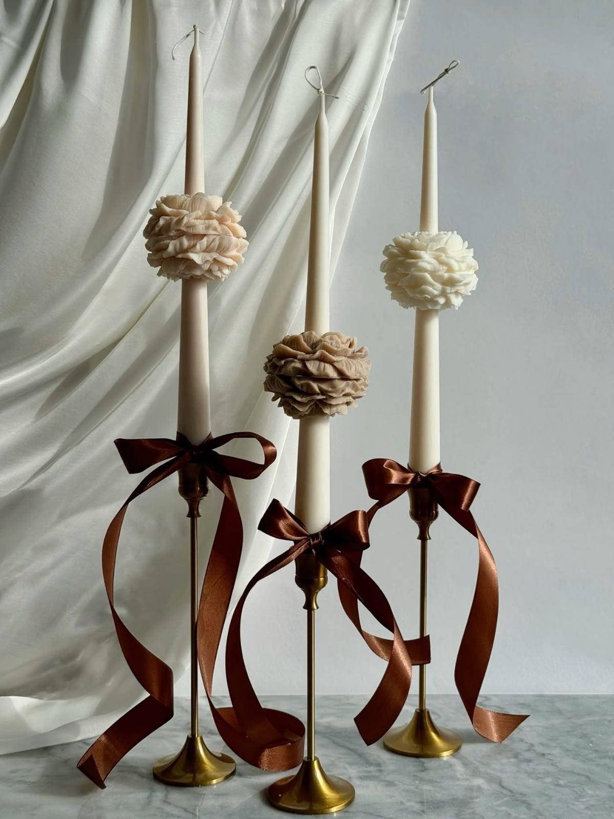 Dekoratif Mum Şamdanlık mum 3 parça 25 Cm uzunluk +şakaik Mum Toplam set toplam 3 parça