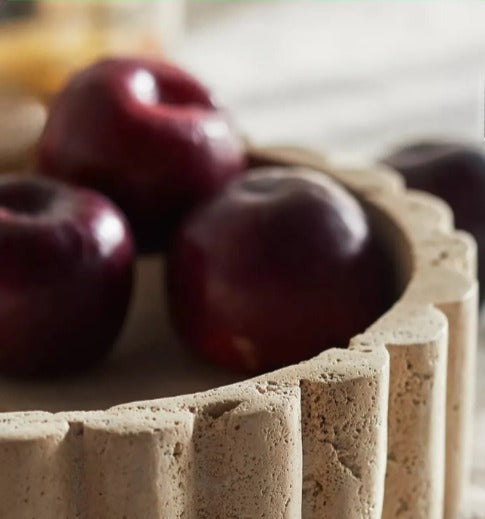 Ivory Traverten Ayaklı Kase, Traverten Dekoratif Ayaklı Kase, Traverten Tabak 26cm