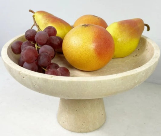Ivory Traverten Ayaklı Kase, Traverten Dekoratif Kase, Traverten Tabak 26cm
