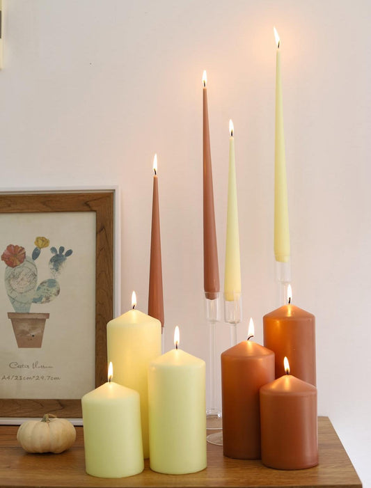 Dekoratif Mum Şamdan Mum Kahve Renk 25 Cm uzunluğu 2kili