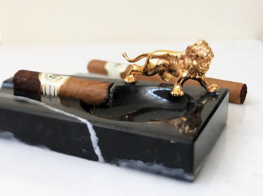 Doğal Siyah Mermer Puro Küllüğü Pirinç Aslan Figürlü Mrm0094