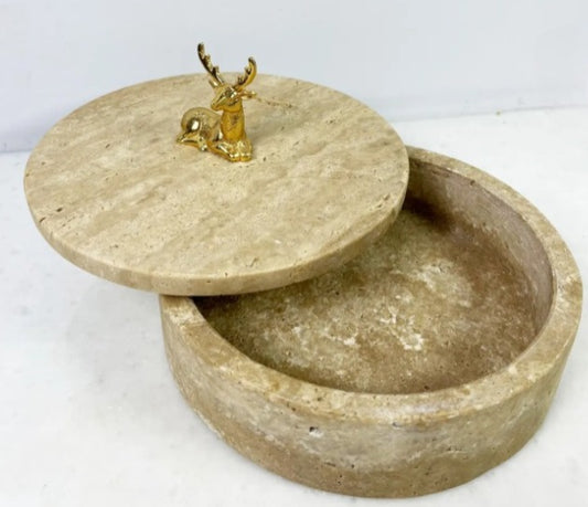 Traverten Kapaklı Kase 20cm Gold Geyik Aksesuarlı