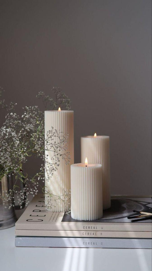 Dekoratif mum Dalga Desenli 1 Adet 20 Cm +2 Adet 15 Cm Toplam 3 parça