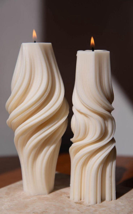 Şamdanlık mum 3 Adet +Ay model dekoratif Mum 1 Adet +3 Lü set Dalgalı mum toplamda 7 Parça Dekoraitf Mum