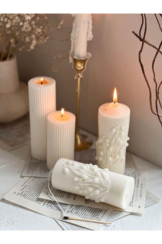 Dekoratif Gül Beyaz Renk Vanilya Rattan Çiçekli Desenli Luks Mum