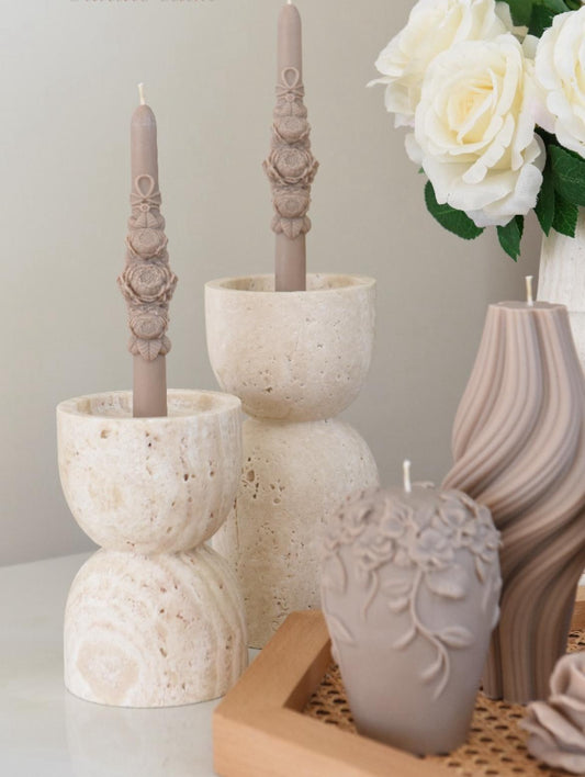 Dekoratif Mum Şamdanlık Mum gül çiçek desenli 2 kili Kahve Renk