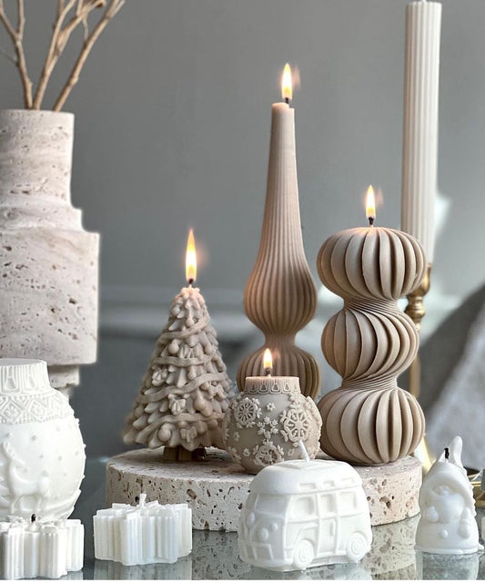 Dekoratif mum Marako+Vazo+Dalga+ikili Yuvarlak +şamdanlık Mum Toplam 7 Parça