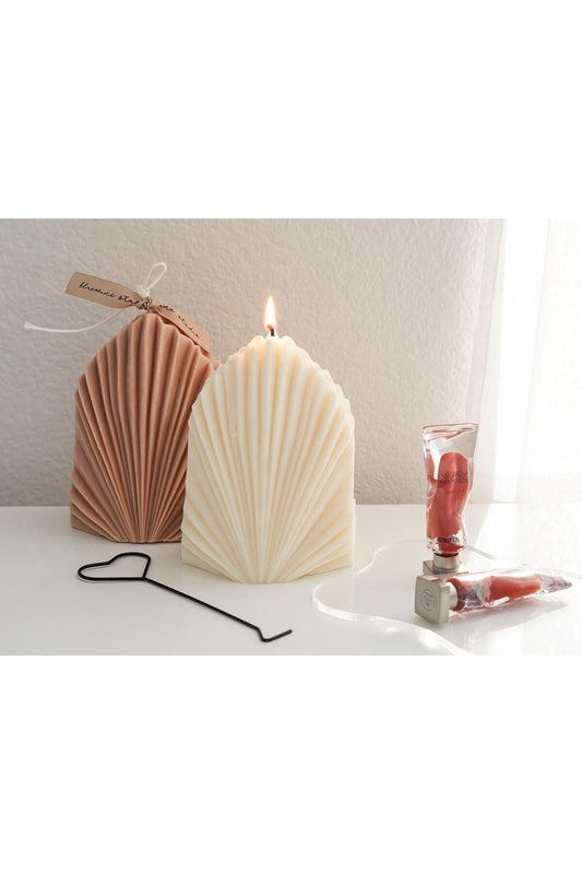 Dekoratif Yelpaze Palm Candle Kahve Renk Luks Mum Tekli Mum