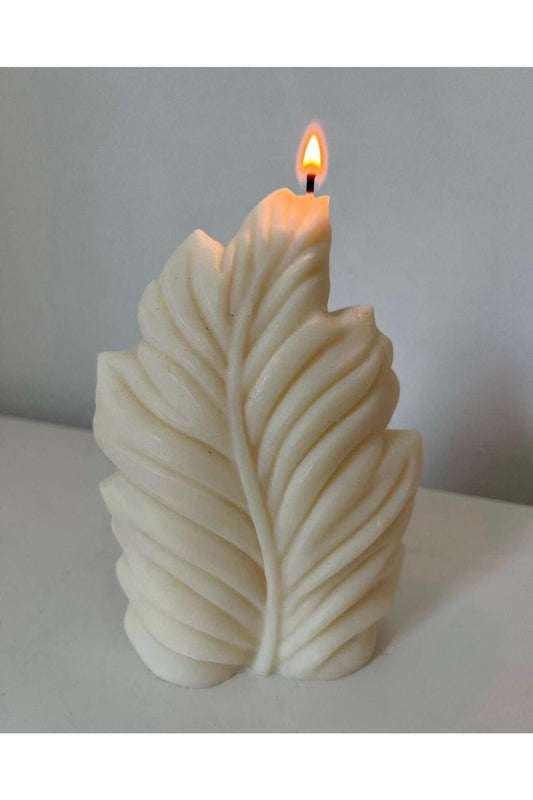 Dekoratif Beyaz Renk Yaprak Desenli Luks Mum Tekli Mum