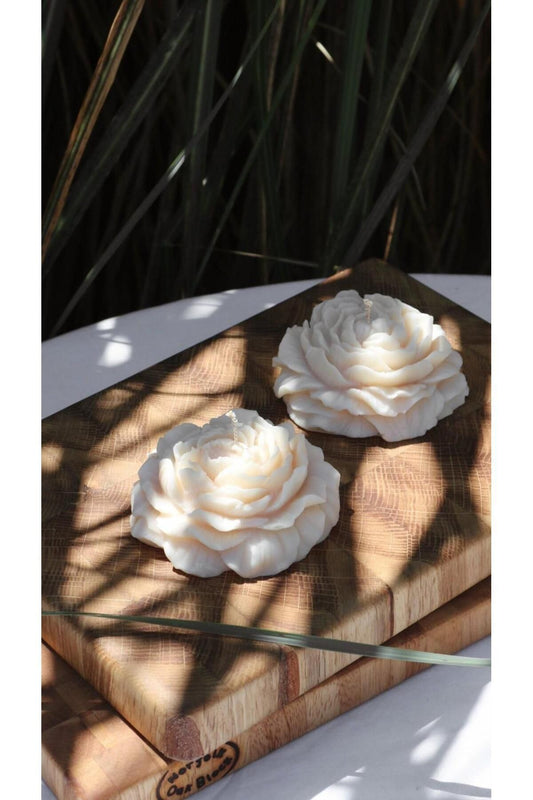 Dekoratif Gül Beyaz Renk çiçekler üste Tekli Luks Mum