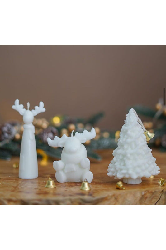Yeniyıl Yılbaşı Chirismas Geyik Model Beyaz Renk Dekoratif Mum