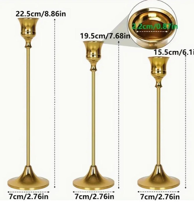 3 Adet Tek Başlıklı Masaüstü Dekoratif Metal Mumluk