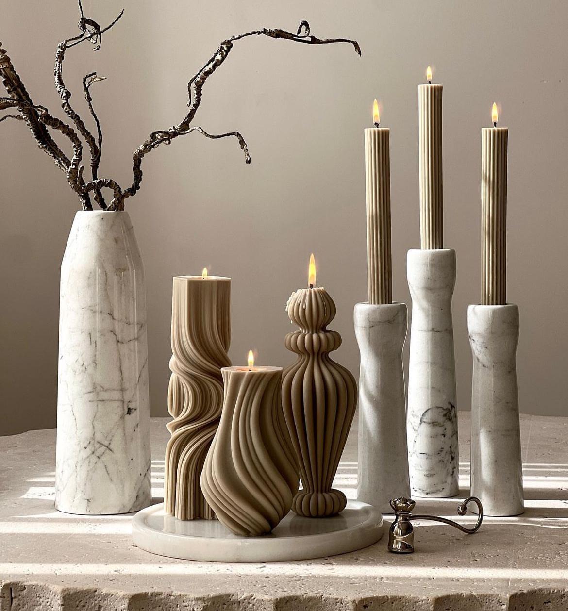 Dekoraitf mum Dalga Mum +Marako +Vazo +Şamdanlık Mum Topalm 6 Parça