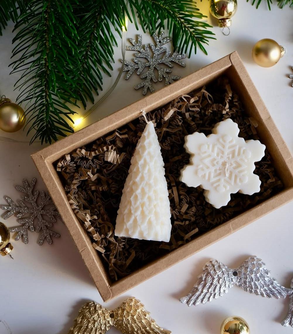 Dekoratfi Mum Yeni yıl çam ağaç Kartanesi+çam Ağaç toplam 2 parça