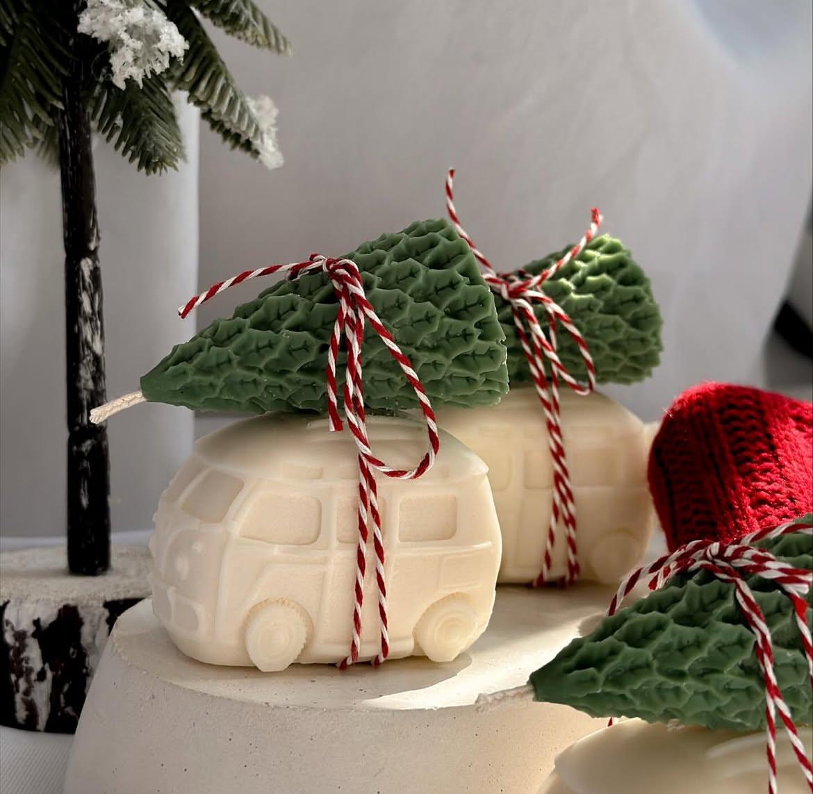Dekoratif Mum Araba +Çam Ağaç Toplam 2 Parça