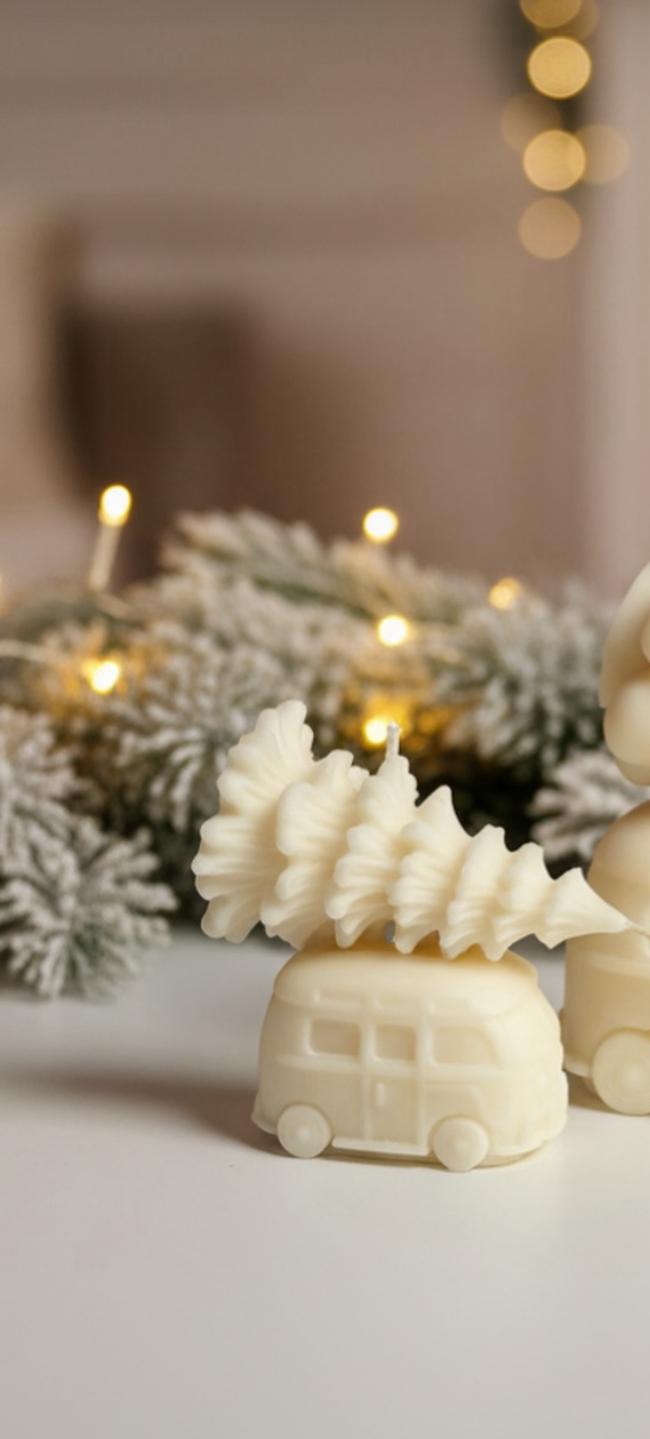 Dekoratif Mum Araba +Çam ağaç toplam 2 parça
