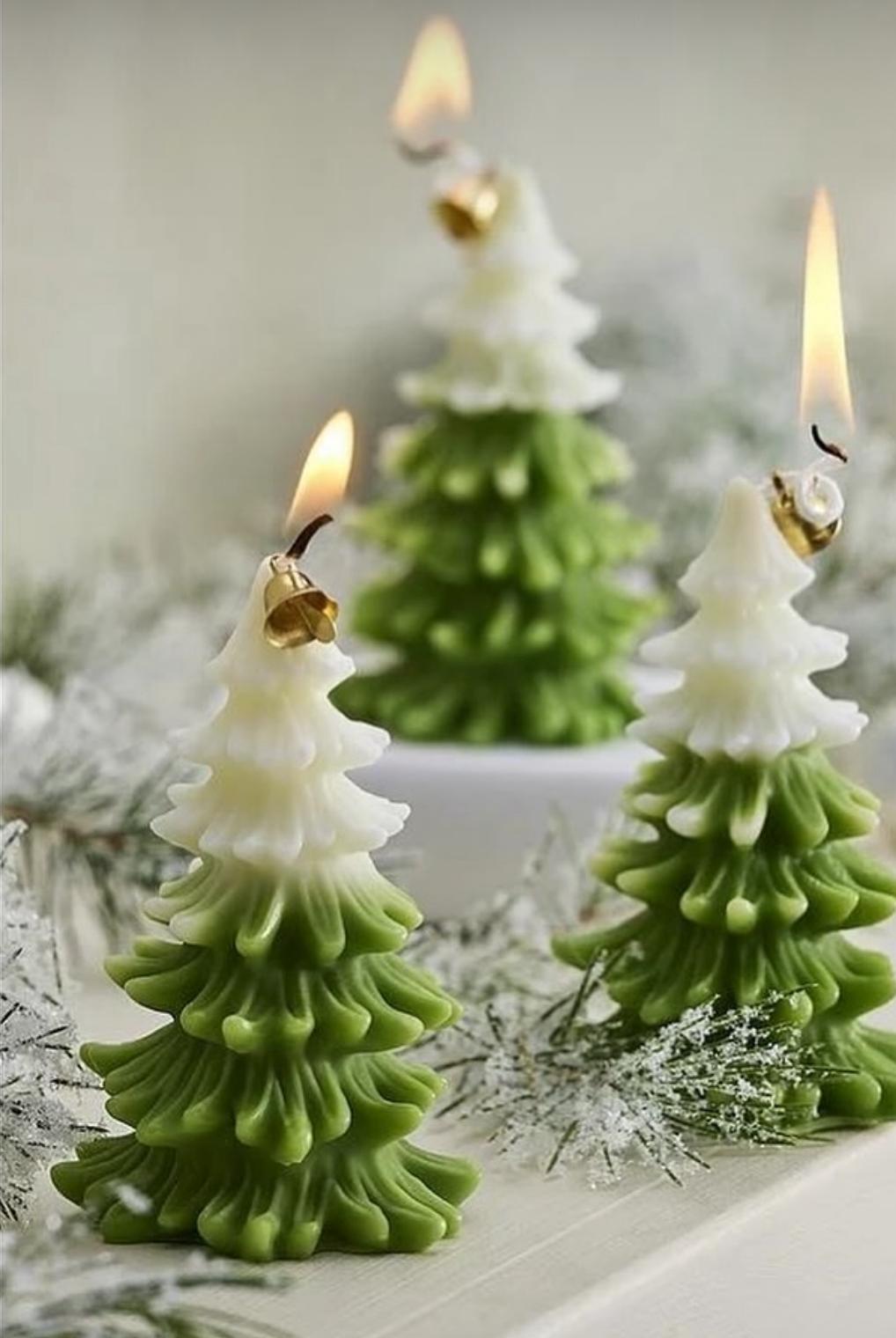 Dekoratif Mum Çam ağacı üst beyaz Alt Yeşil Renk