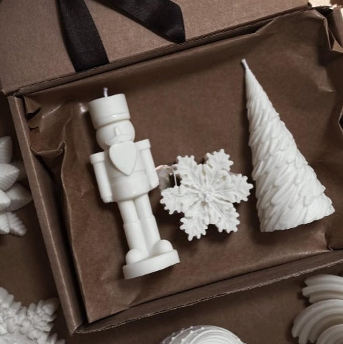 Dekoratif mum Kardan Adam +Çam Ağaç Kar tanesi Toplam 3 Parça