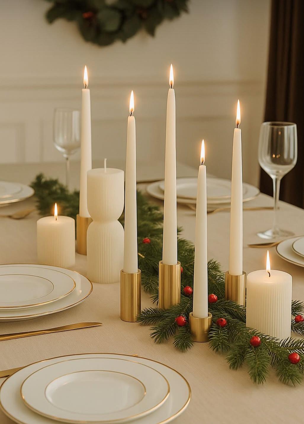Dekoratif Mum şamdan Mum 25 Cm Beyaz Renk 2 kili