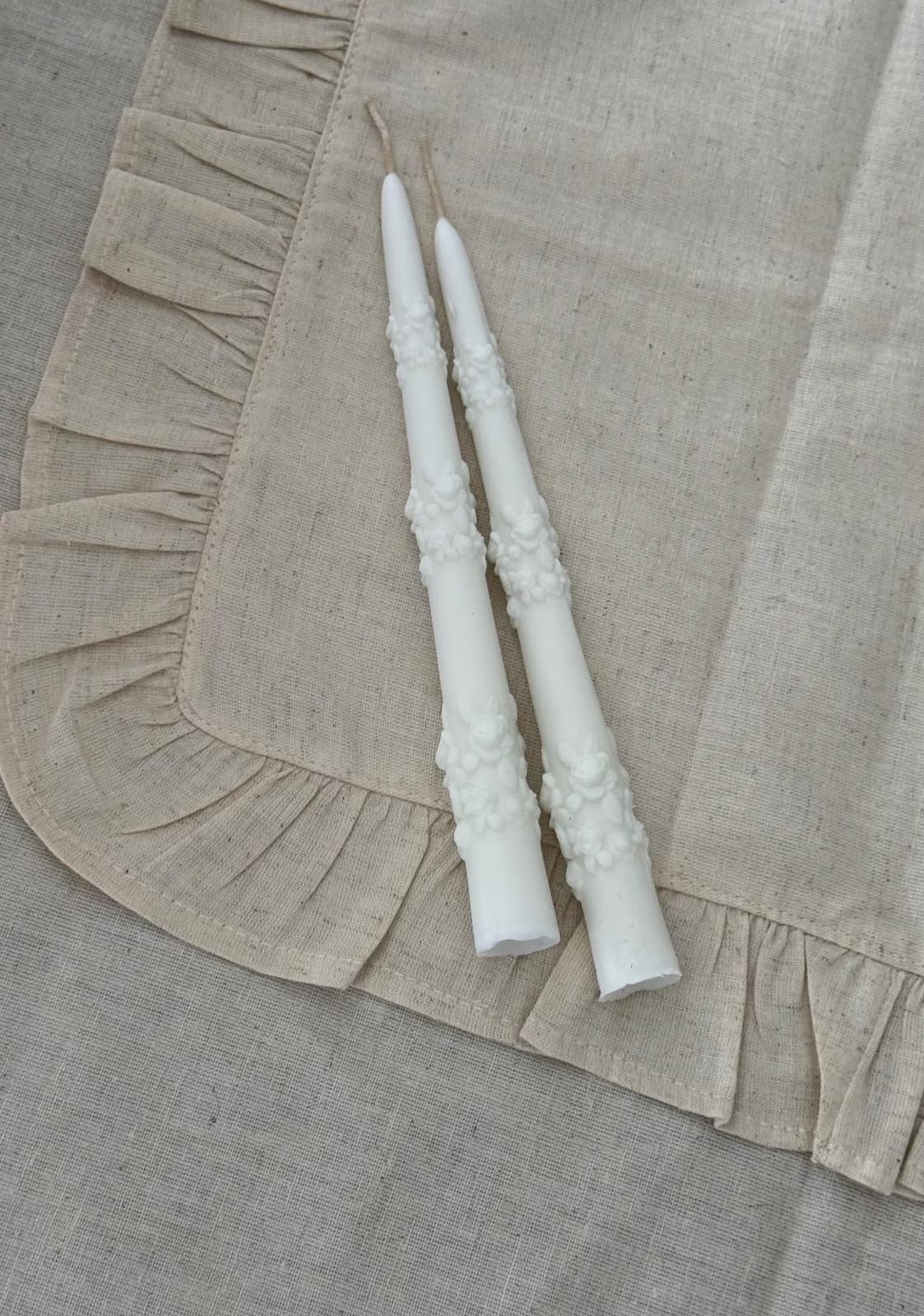 Dekoratif Mum Şamdanlık Gül Çiçek desenli 2 Li ürün Beyaz Renk