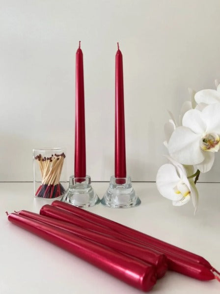 Dekoratif Mum Şamdanlık Mum Metalık Kırmızı renk 2 Kili 25 CM uzunluğu