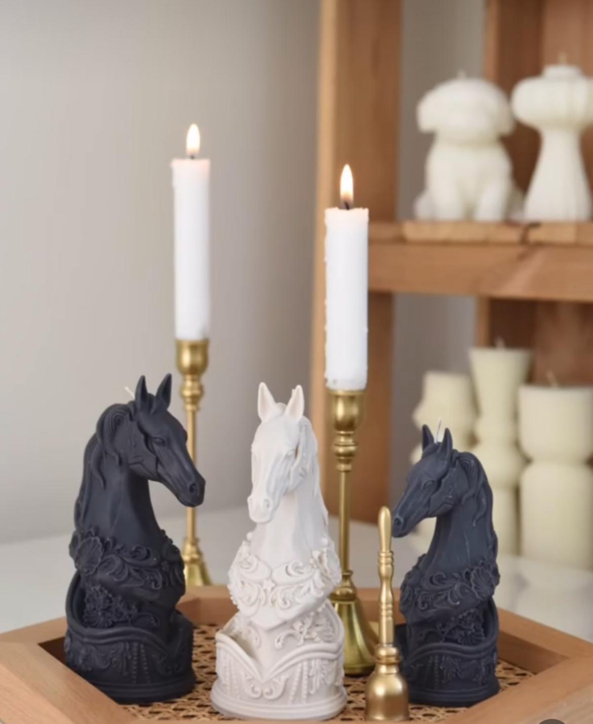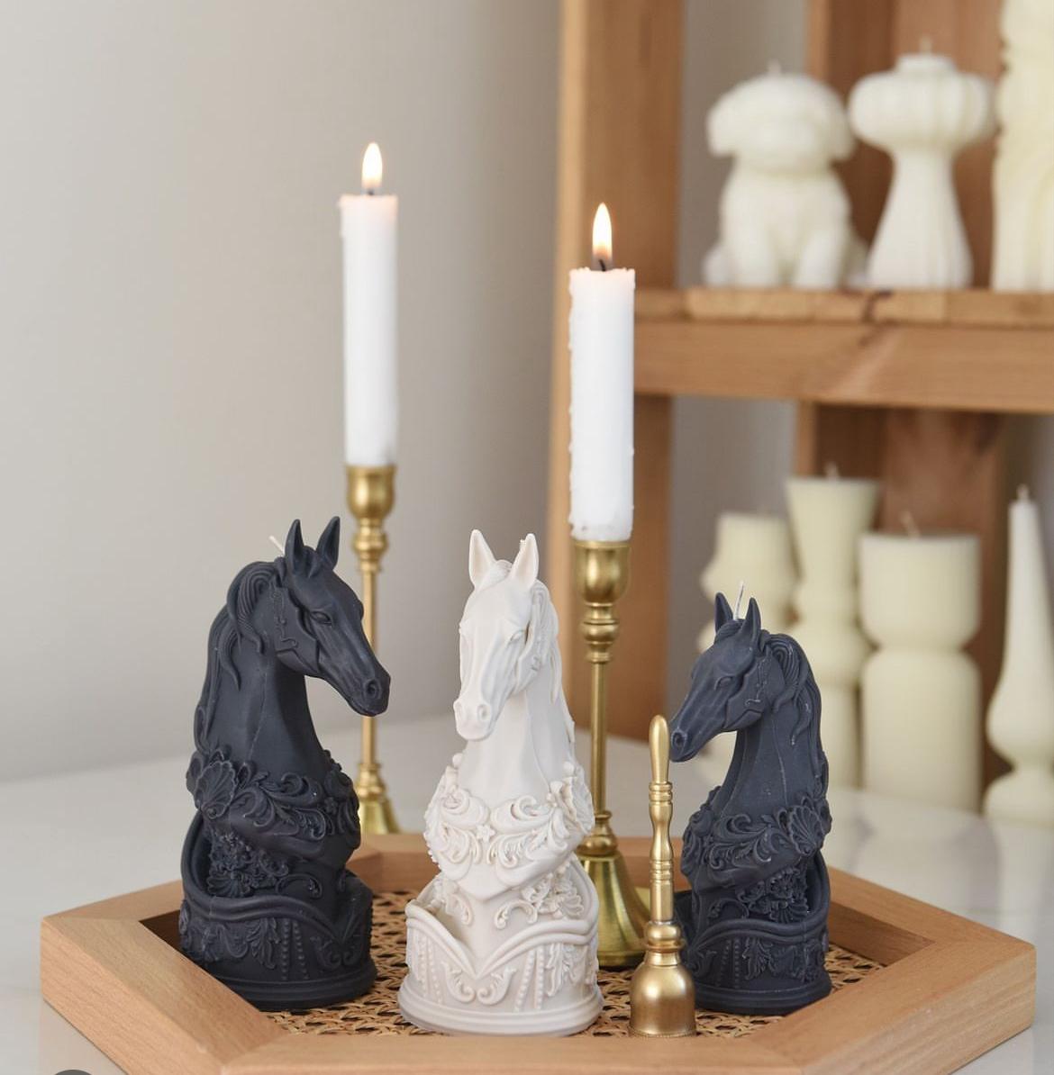 Dekoratif Mum Siyah At2 Adet +Beyaz At 1 Adet +Şamdanlık Mum Toplam 5 Parça