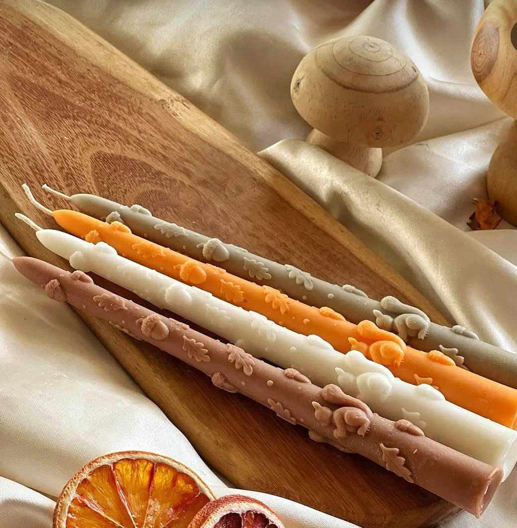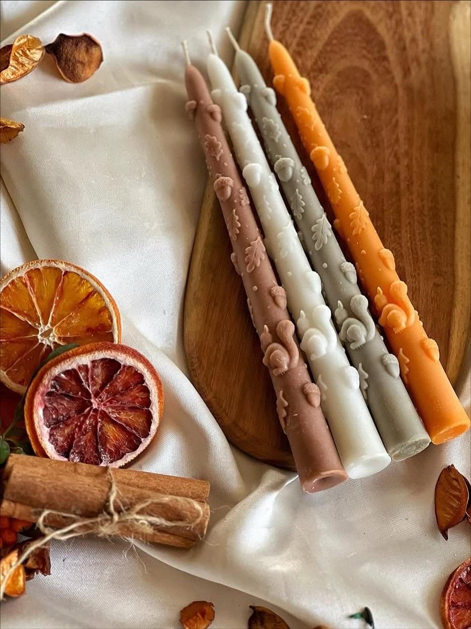 Dekoratif mum Son Bahar Şamdan Mum Turuncu Renk 2 kili