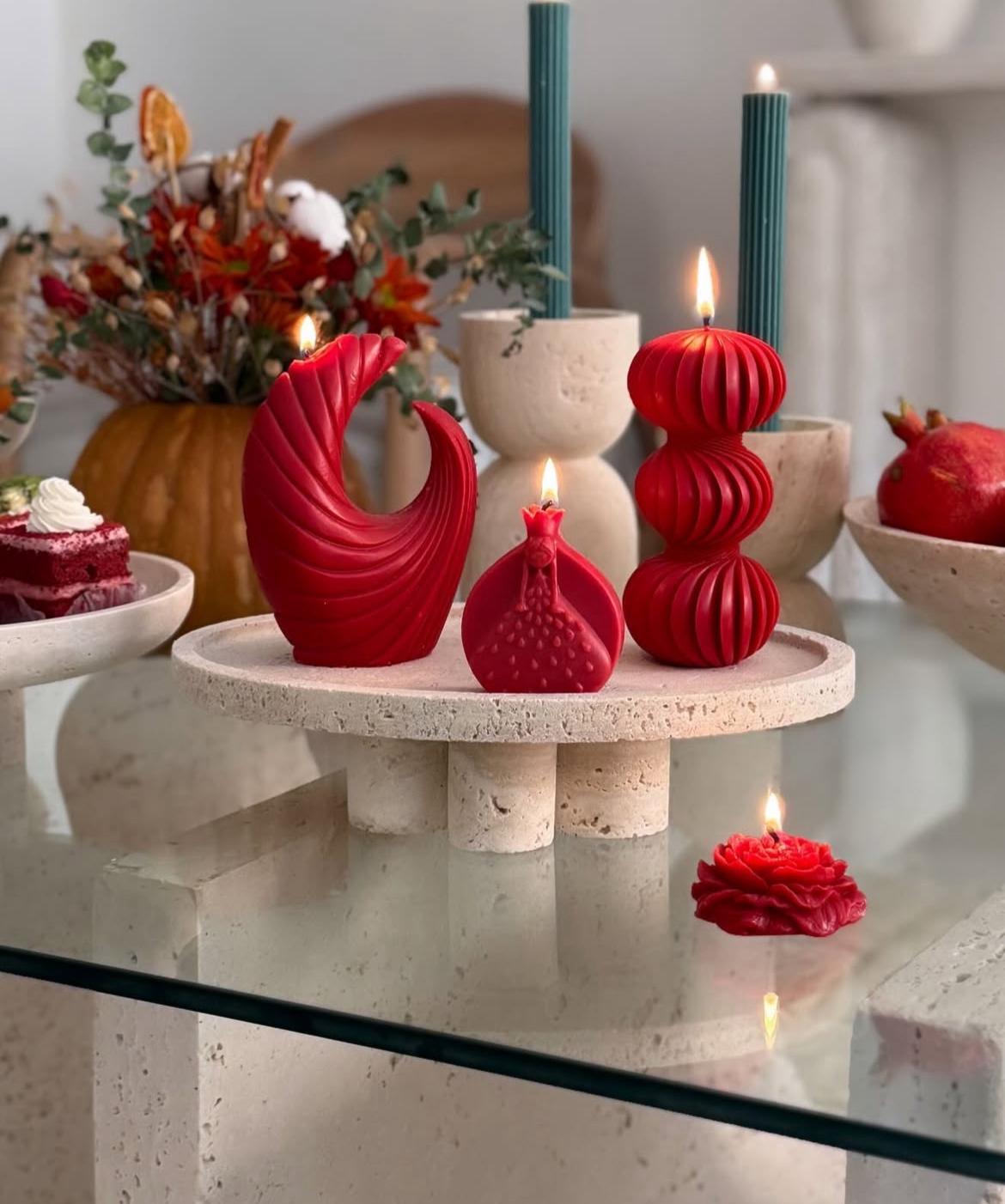 Dekoratif mum üçlü top model +Ay model +çizgili şamdan MUm +Gül toplam 5 Parça