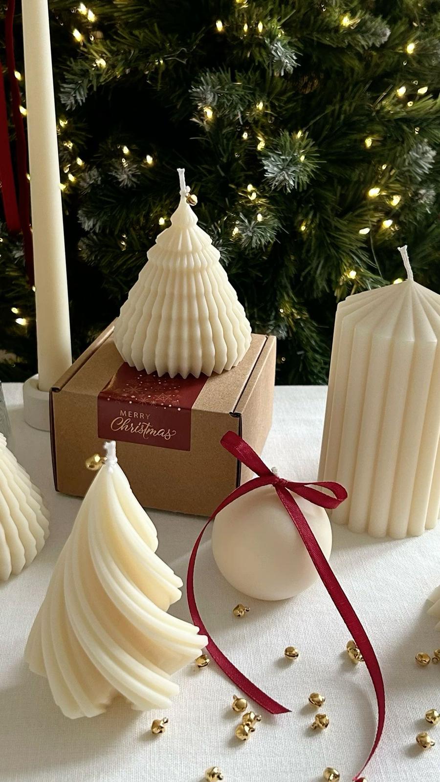 Dekoratif mum Yeni Yıl Çam Ağaç +çokgen +tolp toplam 4 parça