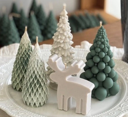 Dekoratif Mum Yeniyıl çam ağaç +Geyik Toplam 5 parça