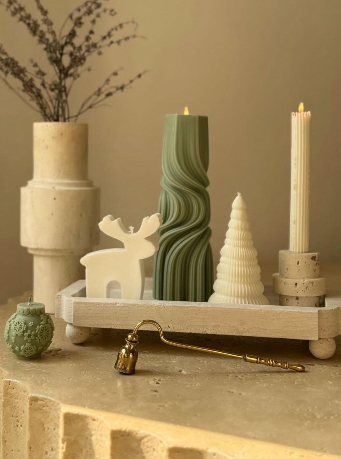 Dekoratif Mum yılbaşı Dalga +caç ağaç +coin +Saşmanlık MUm +Geyik toplam 5 parça
