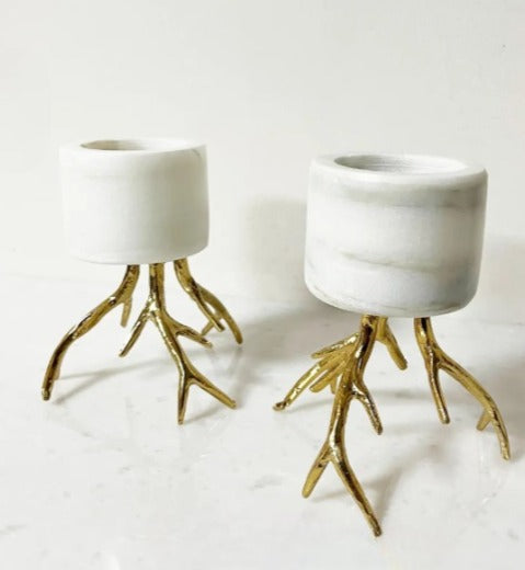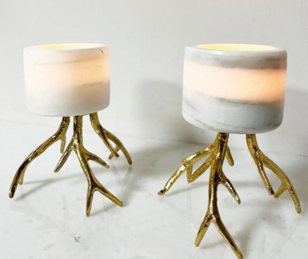 Doğal Beyaz Mermer Mumluk, Ayaklı Mumluk, Mermer TeaLight, Gold Ayaklı Mumluk 2 Adet