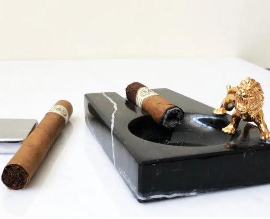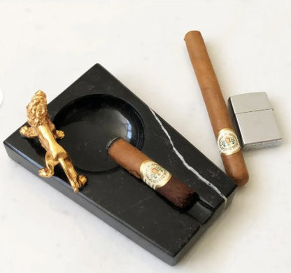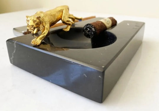 Doğal Siyah Mermer Puro Küllüğü Pirinç Aslan Figürlü Mrm0094