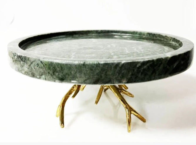 Doğal Yeşil Mermer Tepsi Gold Dal Ayaklı, Verde Guatemala 25cm