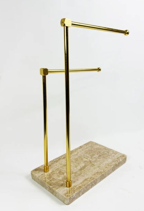 Traverten Mermer Ayaklı Banyo El Havluluk Gold Askılı